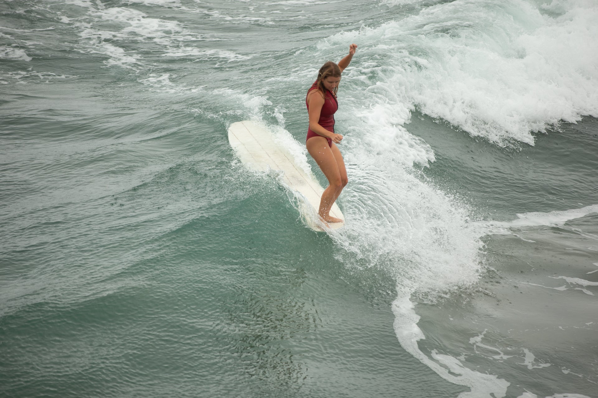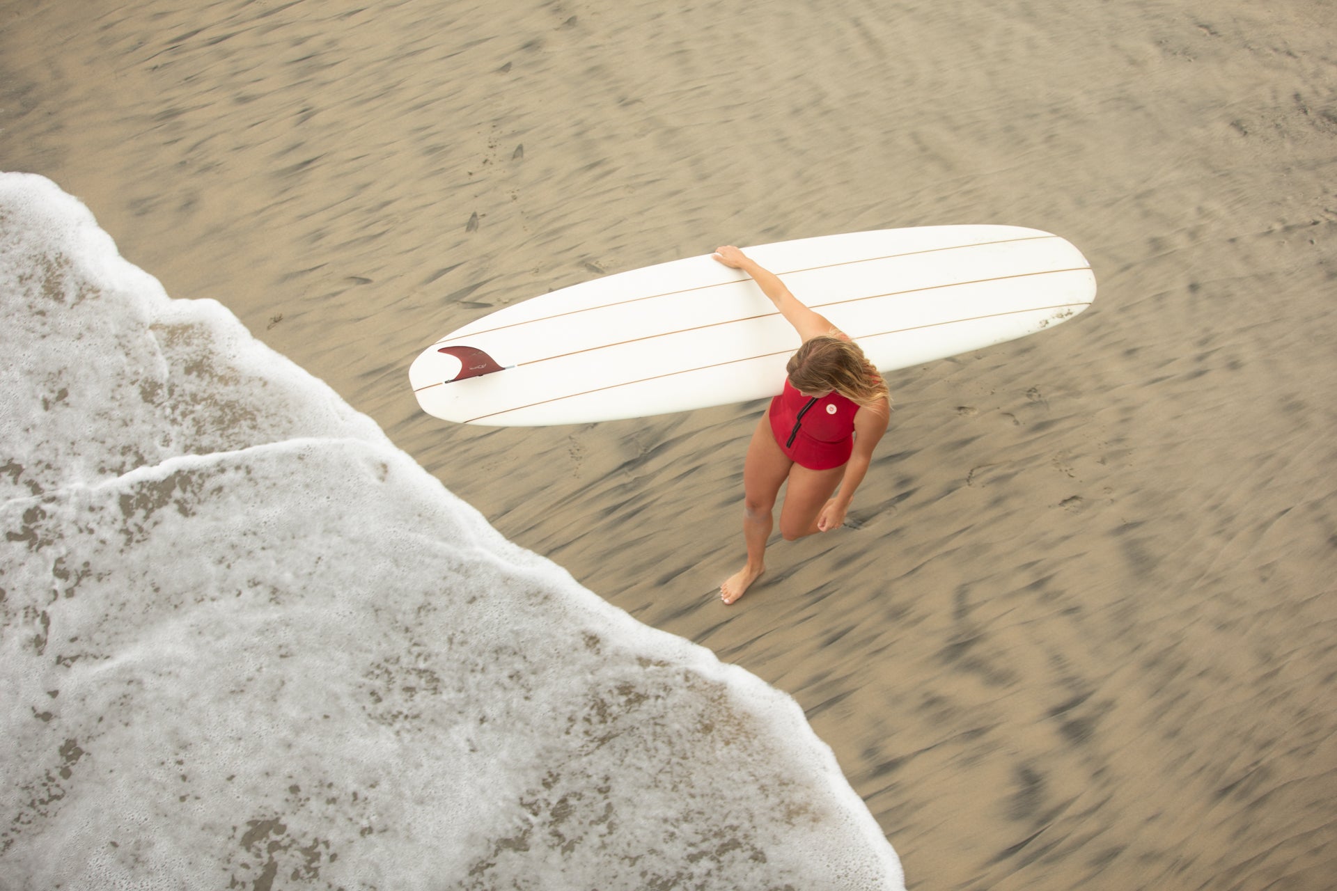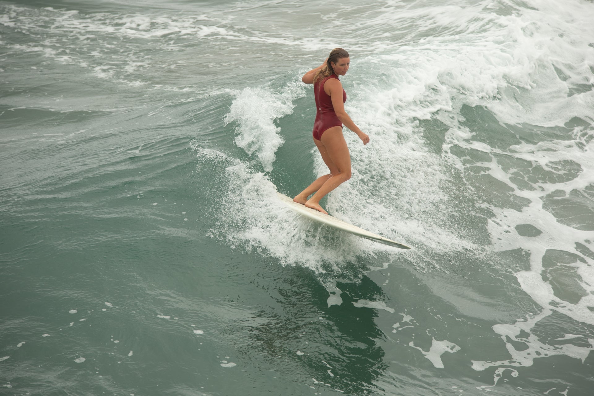 The 'Farrah' has a front zipper for easy entry and shaped hip panels for added comfort along with a flattering fit. The upper body is inspired by a 1920's style corset to create a slim fit. The suit is made from double sided nylon and is the first wetsuit we have produced in a colour other than black. It is blind stitched on the outside with glued internal seams to keep it comfortable against the skin.